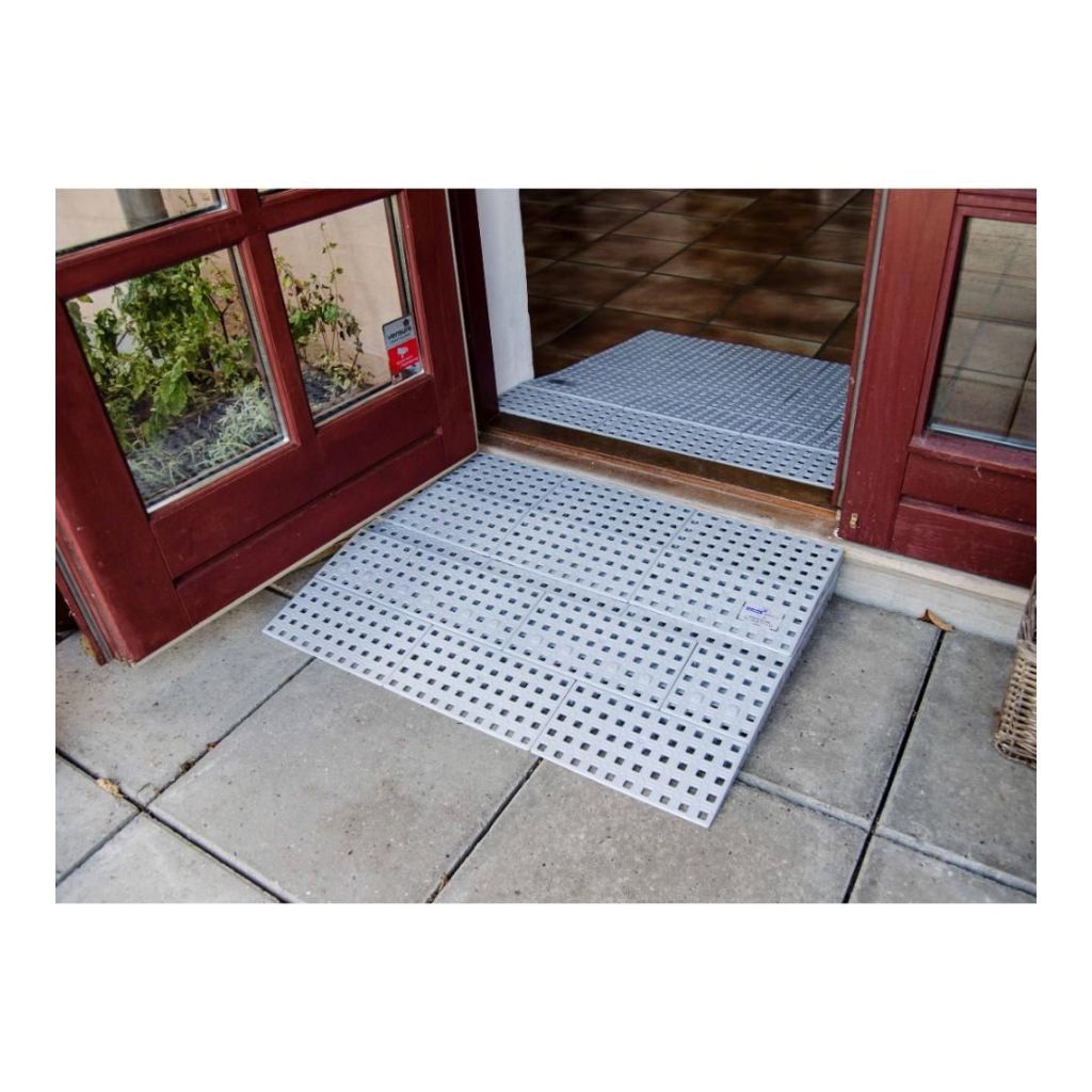 Med en rullstolsramp för trösklar kan företag uppfylla krav på nivåfri tillgång. En rullstolsramp för trösklar ger företag, restauranger, butiker m.fl. möjlighet att välkomna fler kunder genom att erbjuda enkel tillgång för personer med nedsatt rörlighet över trösklar eller vid nivåskillnader. En rullstolsramp för trösklar kan även användas för rollatorer, shoppingvagnar, barnvagnar och mycket mer. Du kan med fördel placera rampen vid din altandörr eller som en utomhus tröskelramp. Våra rullstolsramper för trösklar är alla tillverkade av slitstarka och tåliga material.